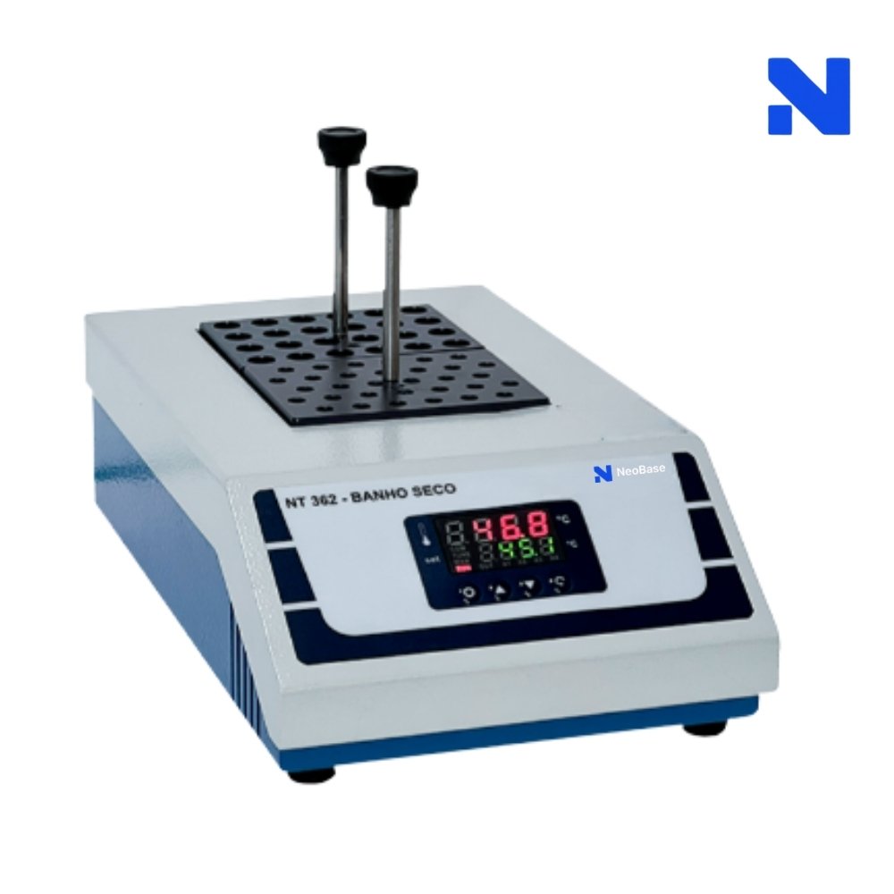 O Banho Seco | Termobloco Neobase para 2 blocos garante aquecimento preciso e confiável, oferecendo versatilidade e segurança para suas aplicações laboratoriais. Adquira o seu e maximize a eficiência e qualidade das suas análises.